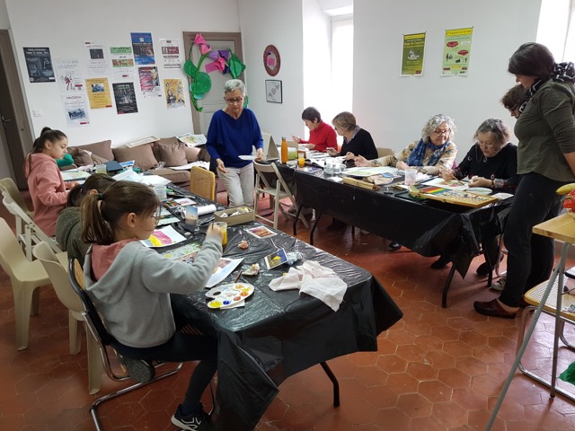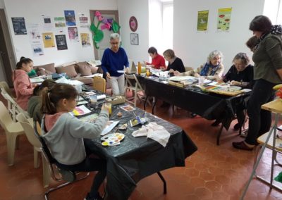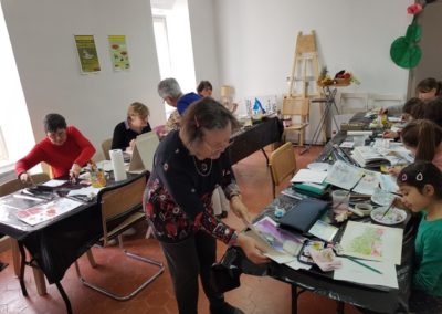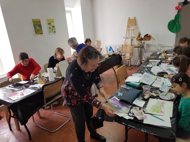 Les ateliers aquarelle, l’un des mots de l’opération Dis-moi 10 mots, ont attiré sur 2 journées deux fois 10 personnes de tous âges très appliquées et motivées. Tout le monde est reparti enthousiaste. Un grand merci à Sylvie et Françoise qui les ont accompagnées dans leurs réalisations ! Celles-ci seront exposées dimanche 26 avril dans l’aire de jeux face au cimetière.