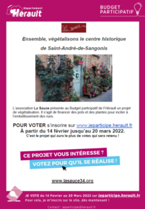 affiche végétalisation par Malika Reungoat | Fév 12, 2022 | 0 commentaires Articles Récents 2026 : « Les Quatre Saisons des Léz’Arts »30 décembre 2025Novembre : le cœur battant de l’automne30 octobre 2025Des « coffrets d’art » dans les rues de Saint-André ?27 septembre 2025Soirée d’initiation au jeu de rôle sans maître du jeu !30 août 2025Vibrons ensemble le 14 juin !27 mai 2025 Poster le commentaire Annuler la réponseVotre adresse e-mail ne sera pas publiée. Les champs obligatoires sont indiqués avec *Commentaire * Nom * E-mail * Site web Résoudre : * 21 + 30 =