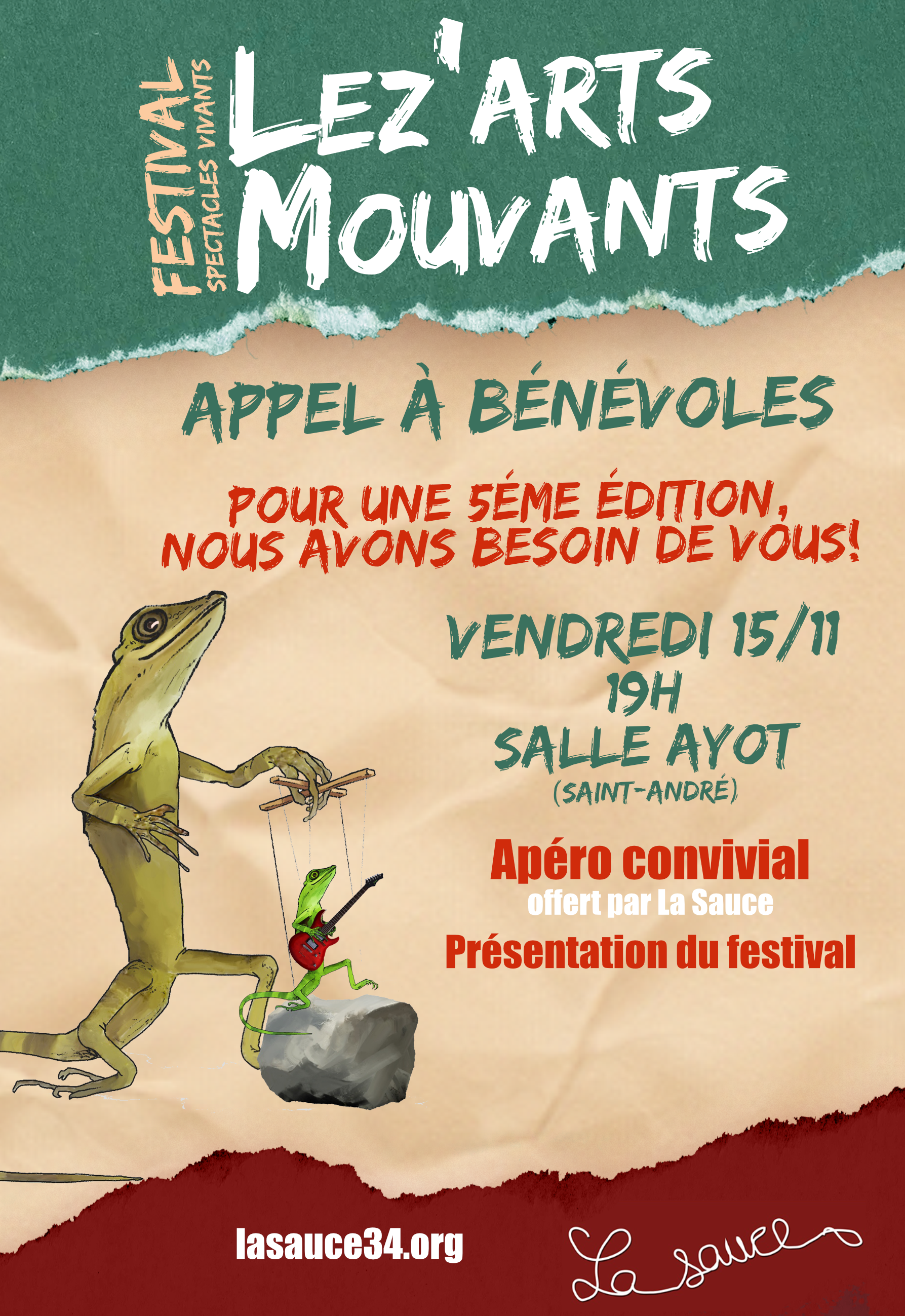 Samedi 14 juin 2025, l’équipe des Léz’arts organisera la 5e édition de ce festival d’arts vivants qui a trouvé son public. Vous avez apprécié le Festival, la diversité de ses spectacles, sa forme originale dans les jardins et les rues de Saint-André ? Ou vous vous mordez les doigts de ne pas avoir pu y participer ? Vous voulez aider à son organisation ? Toute aide sera la bienvenue !