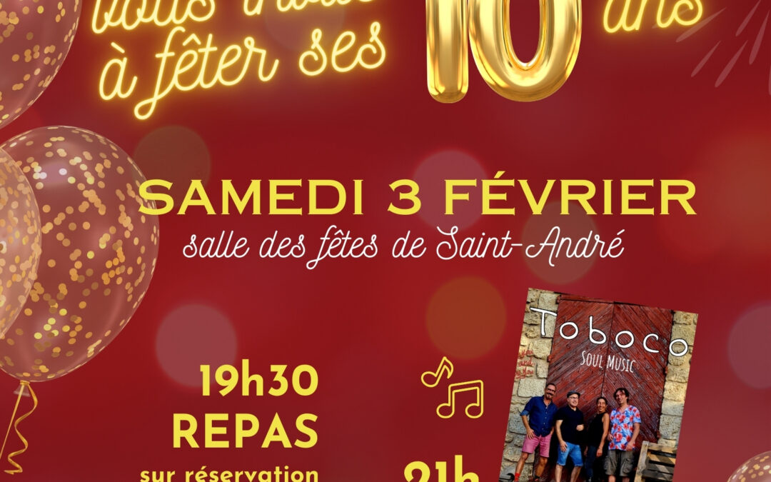 affiche 10 ans meilleure qualité par Malika Reungoat | Jan 17, 2024 | 0 commentaires Articles Récents 2026 : « Les Quatre Saisons des Léz’Arts »30 décembre 2025Novembre : le cœur battant de l’automne30 octobre 2025Des « coffrets d’art » dans les rues de Saint-André ?27 septembre 2025Soirée d’initiation au jeu de rôle sans maître du jeu !30 août 2025Vibrons ensemble le 14 juin !27 mai 2025 Poster le commentaire Annuler la réponseVotre adresse e-mail ne sera pas publiée. Les champs obligatoires sont indiqués avec *Commentaire * Nom * E-mail * Site web Résoudre : * 29 × 23 =