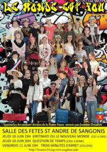 petite sauce spectacle 2021_web par Didier Organde | Mai 30, 2021 | 0 commentaires Articles Récents 2026 : « Les Quatre Saisons des Léz’Arts »30 décembre 2025Novembre : le cœur battant de l’automne30 octobre 2025Des « coffrets d’art » dans les rues de Saint-André ?27 septembre 2025Soirée d’initiation au jeu de rôle sans maître du jeu !30 août 2025Vibrons ensemble le 14 juin !27 mai 2025 Poster le commentaire Annuler la réponseVotre adresse e-mail ne sera pas publiée. Les champs obligatoires sont indiqués avec *Commentaire * Nom * E-mail * Site web Résoudre : * 27 + 13 =