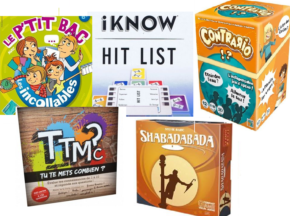 Au programme: Petit bac, I Know Hit List, Contrario et Tu te mets combien? Et si il y a des personnes motivées un petit Shabadabada pourrait bien être organisé en fin de soirée 🙂