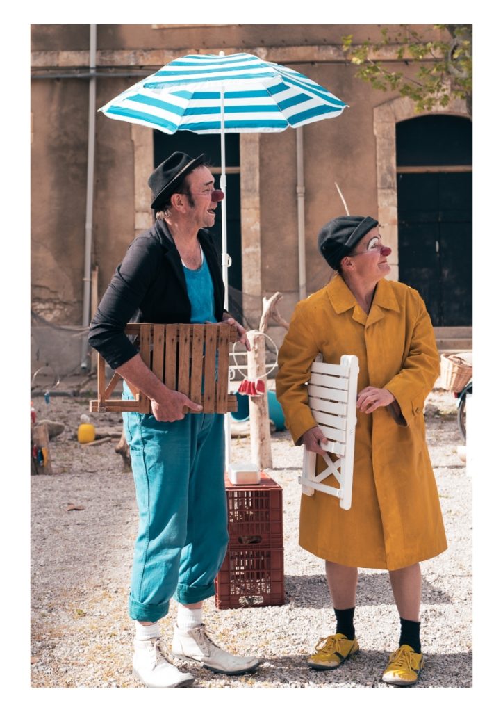 Deux clowns sur une plage imaginaire