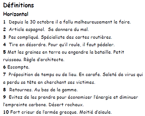 Notre verbicruciste préférée, Fany, nous offre de quoi nous détendre tout en nous remuant les méninges avec ce « mots croisés » :