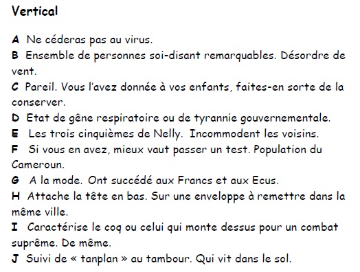 Articles RécentsNotre verbicruciste préférée, Fany, nous offre de quoi nous détendre tout en nous remuant les méninges avec ce « mots croisés » :